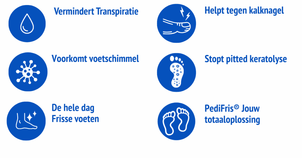 Kies voor de klinisch bewezen effectiviteit en langdurige frisheid van PediFris® om weer vol zelfvertrouwen door het leven te gaan. Bestrijd zweetvoeten effectief met PediSpray® en PediFris®!